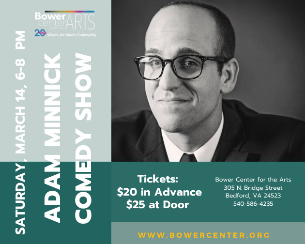 Bower Community Concert Series Adam Minnick is a comedian, writer, and producer. He has worked at comedy clubs across US cities, such as Brad Garrett’s Comedy Club located inside the MGM Casino in Las Vegas, Dry Bar Comedy Club in Provo UT, Improv Comedy Club, Funny Bone Comedy Club, Mark Ridley’s Comedy Castle, and the Punch Line Philly in Philadelphia as well as abroad in Ireland, Australia and Sweden. He has also been featured on Nate Bargatze’s “Nateland” showcase at Zanies Comedy Club in Nashville TN and performed on Holland America’s “Zaandam” Cruise Ship. Adam combines his act of observational humor with stories of teaching, appearances, sports, family, his son and his wife to deliver a clean and intelligent act that entertains and engages audiences of all ages. Adam’s unique view on life is due in no small part to having spent much of his youth in the small town of Napoleon, Ohio and Perth, Australia and traveling everywhere in-between. In addition to working clubs nationwide and appearing at comedy festivals like Gilda’s Laughfest, Flagship City Comedy Fest, Cleveland Comedy Festival, and the Cincinnati Brew Ha-Ha, Adam has become a published Children’s Author with his first book, “The Adventures of My Crazy Uncle Adam”, which has sold domestically and internationally. His latest project is a film “Forgotten”, which had been accepted to the New Filmmakers Film Festival in New York City. It is a true story based on the lives of his Grandparents who spent time in the camps during WWII. Adam has also been heard on 700 WLW, heard and seen on Talk Is Cheap with Rhonda Corey and featured in the nationally distributed magazine “ECLECTIC MAGAZINE” and the book “200 COMEDY WRITERS AND STANDUPS WALK INTO A BOOK”. His Dry Bar Comedy special “Low Pay and Disrespect” was released in the spring of 2022, 3 months following its release, it was ranked #2 among the Top 10 Most Watched Dry Bar Comedy specials. Bower Center for the Arts is fully handicap accessible, ensuring an inclusive and welcoming experience for all visitors. Tickets are $20 in advance, $25 at the door |