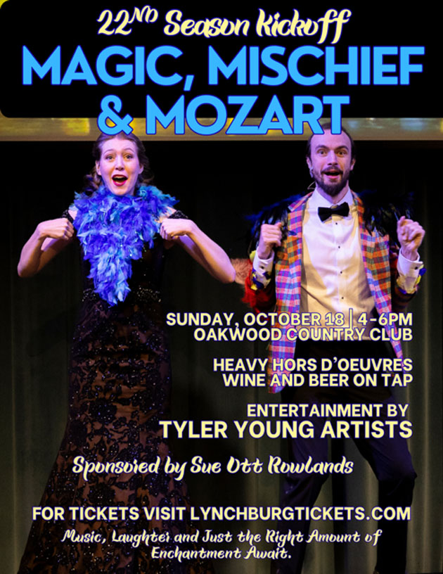 Sunday, October 18, 2026, 4-6 pm Oakwood Country Club Ballroom 3409 Rivermont Ave, Lynchburg, VA 24503 Tickets available now! $75 No additional fees added. Advance purchase required. Heavy Hors D'Oeuvres Wine and Beer on Tap See Also